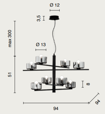 | Corpo | Metal, Blown Glass |